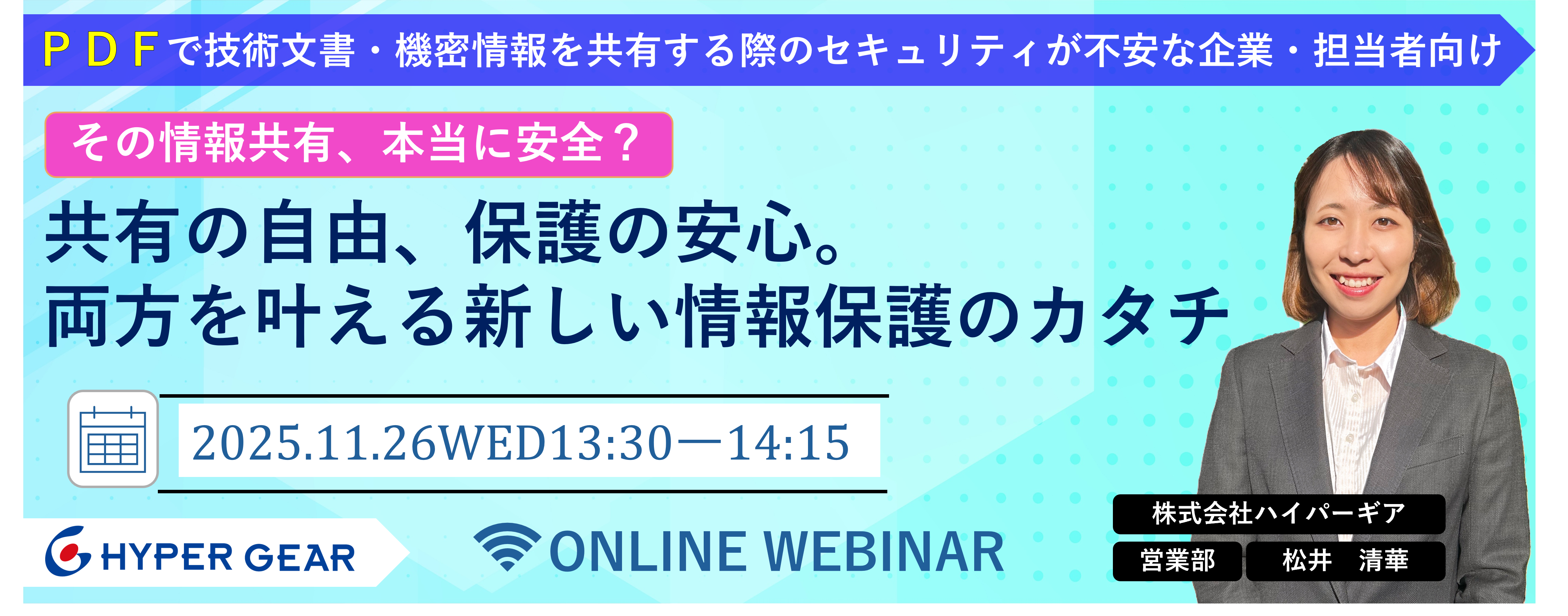 | 日時・場所 | ■日時 2025年11月26日(水) 13:30~14:15 ■場所 オンライン ウェビナー Webセミナー形式 ネット接続環境が必要です。 Zoomウェビナーでの開催を予定しています。 |